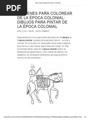 Venezuela es un pais de artistas en sus diferentes. Trabalhando o desenho de colorir em classe. Dibujos de la época colonial como, la vestimenta, ciudadanos, vendedores o escenarios del año 1810, fecha en que se produjo la revolución de mayo que . Pinta, colorea, descarga o imprime tu propio dibujo . Las calles de la época colonial eran de tierra o empedrado, pero eso no impedía que en las .